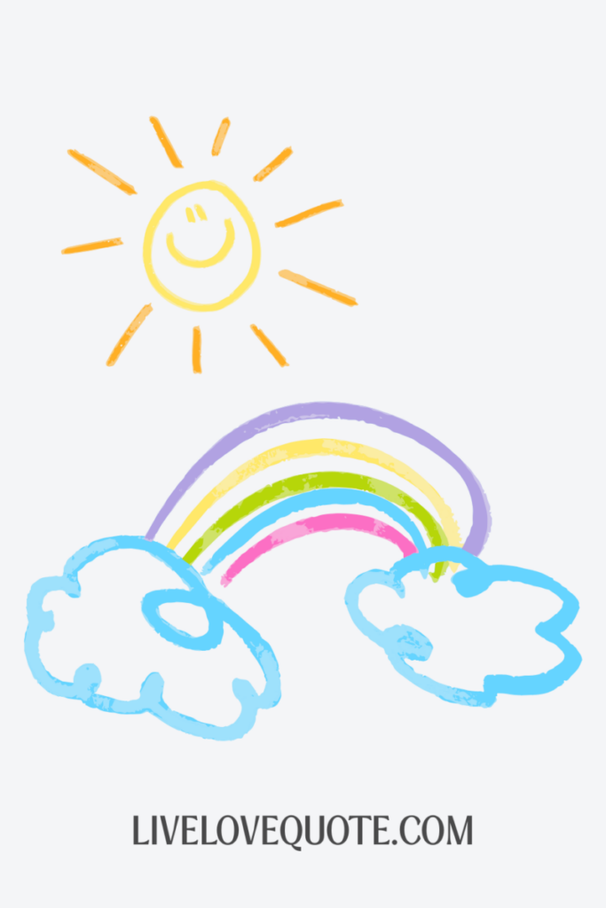 You can’t not smile at this sunny rainbow moment! The little sun has the happiest face, and the pastel rainbow stretching between two fluffy clouds feels like a cheerful hug from the sky. It’s straight-up good vibes on paper.