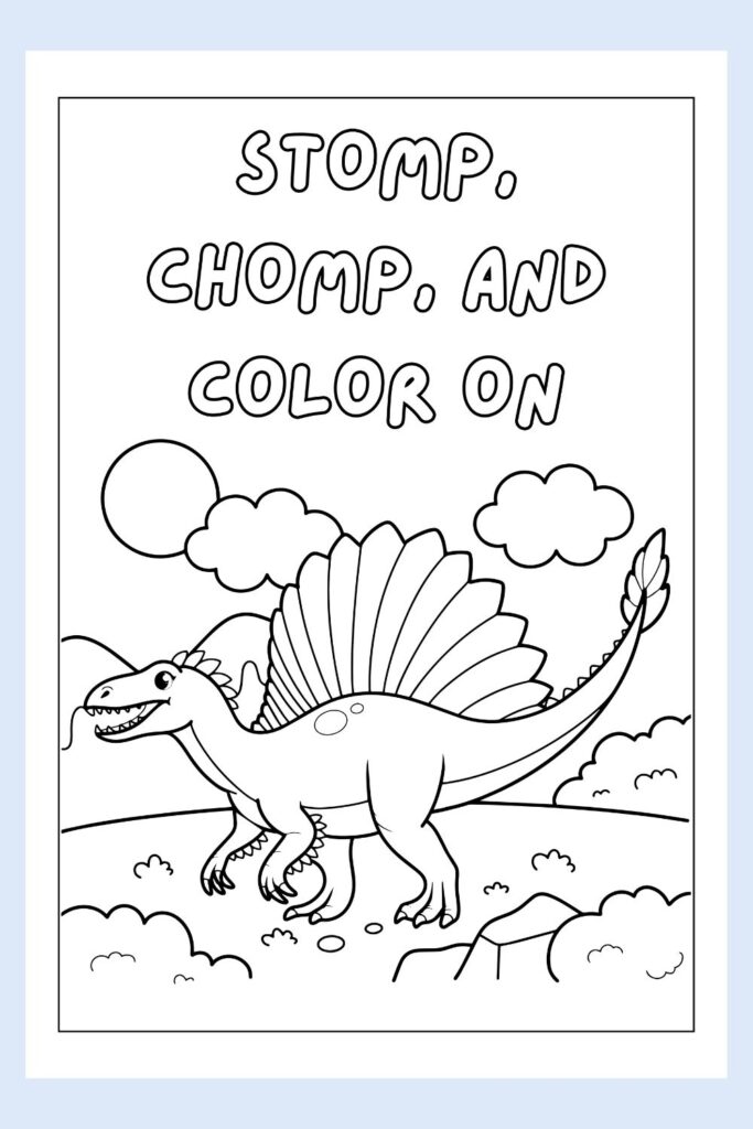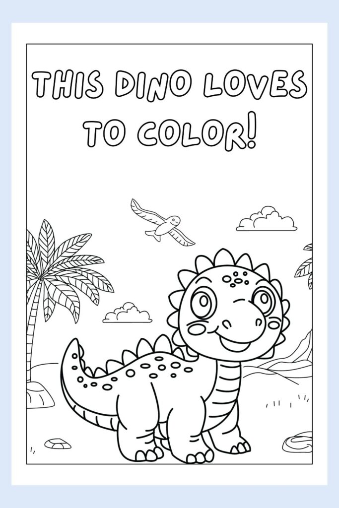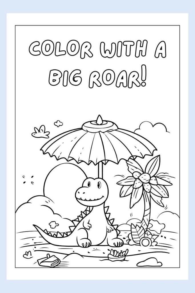 I love this one because it encourages kids to color fearlessly. It’s a page that feels full of excitement, like the dino is cheering them on to fill it with all their favorite colors. There’s no “right” way to color this, just a fun, creative moment waiting to happen.
