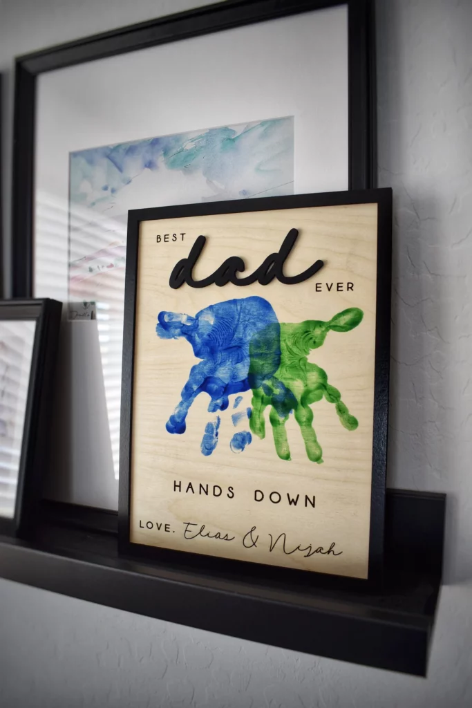 It’s one of those gifts that doesn’t feel overly fancy but still makes a big impact. If you’re shopping for a dad who melts over family moments and loves something a little rustic and handmade, this one totally hits the mark.
