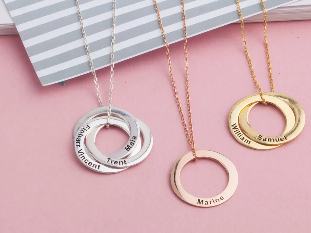 This necklace is such a unique way to keep loved ones close to your heart. Each ring is engraved with a name, symbolizing the unbreakable connections between family members.