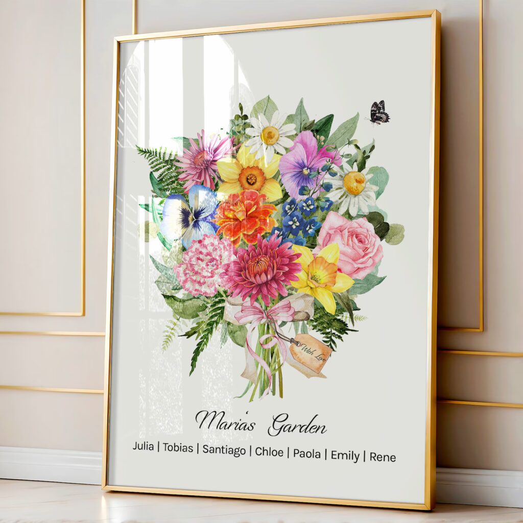 This stunning floral print is such a thoughtful way to celebrate your mom and the people she loves most. You can customize it with the names of her children or grandkids, turning it into a beautiful keepsake she’ll cherish forever.