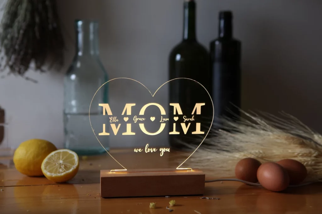 This glowing acrylic heart is such a heartfelt way to remind Mom how much she’s loved. You can personalize it with names, making it a beautiful nightstand or desk piece she’ll cherish.