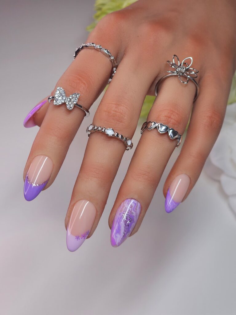 Purple is such an underrated summer color, and this set proves it deserves way more attention. I love the mix of different purple tones, with a little bit of shimmer and marble detail for some extra flair. It feels classy but still fun.