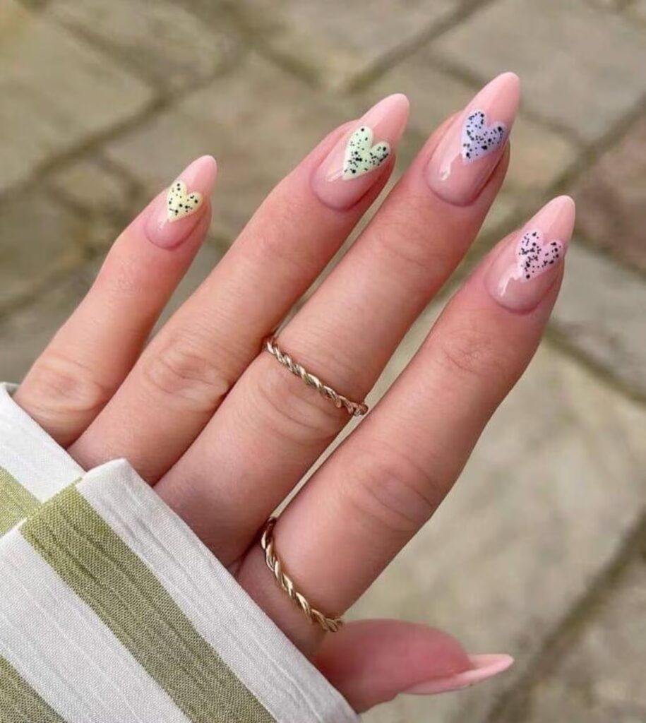 I love how these speckled hearts add a quirky twist to an otherwise soft, romantic look. The speckles give a little edge, but the pastel colors still keep everything super light and summery. It feels artsy, flirty, and just really fun to look at.