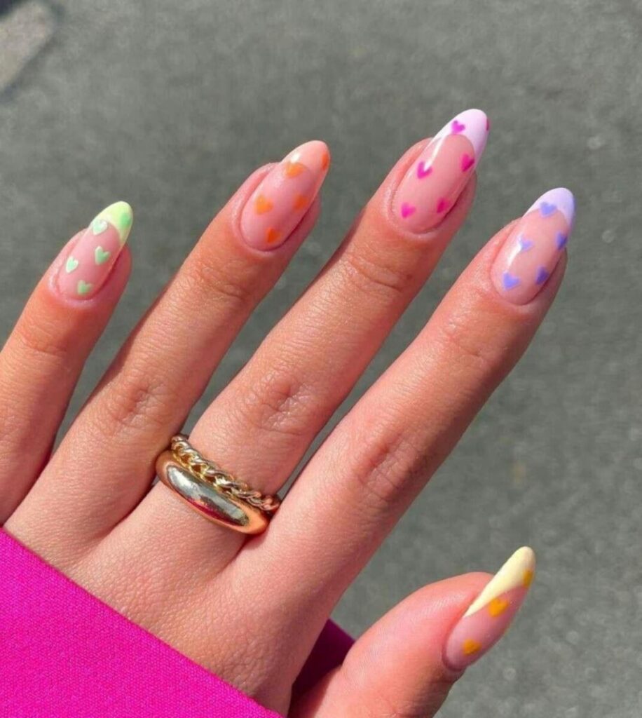 I’m so into how playful and bright these little hearts are. Each nail has a different color scheme, and the way they fade into the tips is so clever and cute. They’re bold, fun, and totally give off that carefree, sunshine-y vibe.