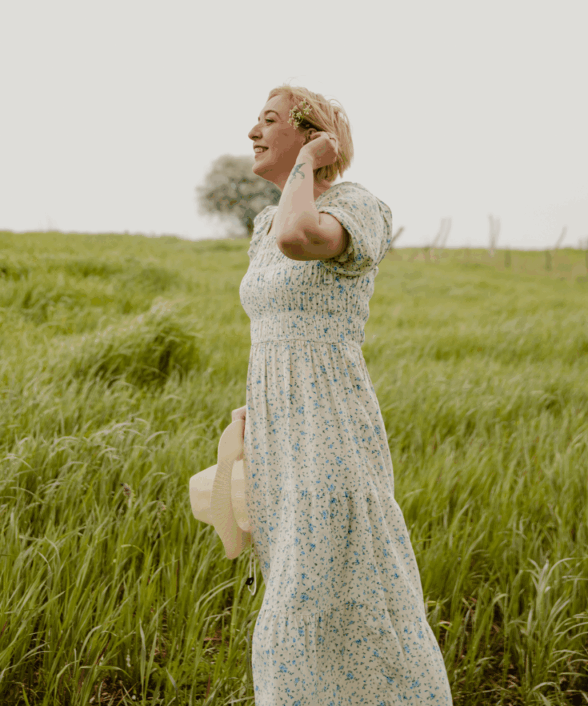 Add a straw hat or tuck a little wildflower behind your ear to complete the vibe. It’s perfect for walking through tall grass, chasing sunshine, or just feeling cute all day long.